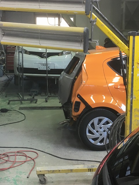 | 天候や路面の せいでしょうか バックバンパーなどの 板金塗装が多く入庫しました。 |